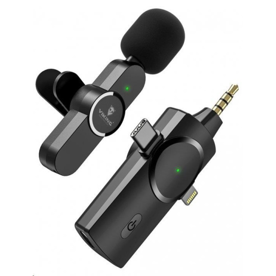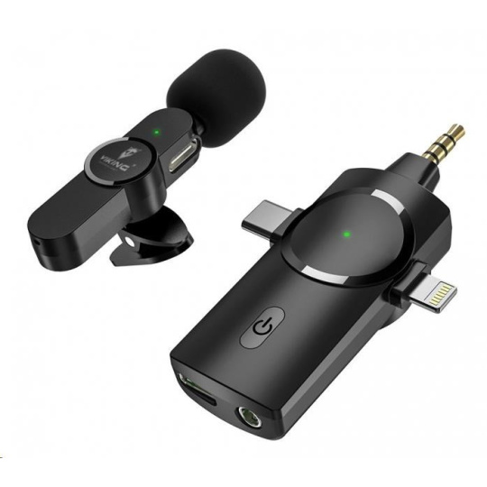 Bezdrôtový mikrofón Viking s klipom M360, USB-C / Lightning / 3,5 mm jack