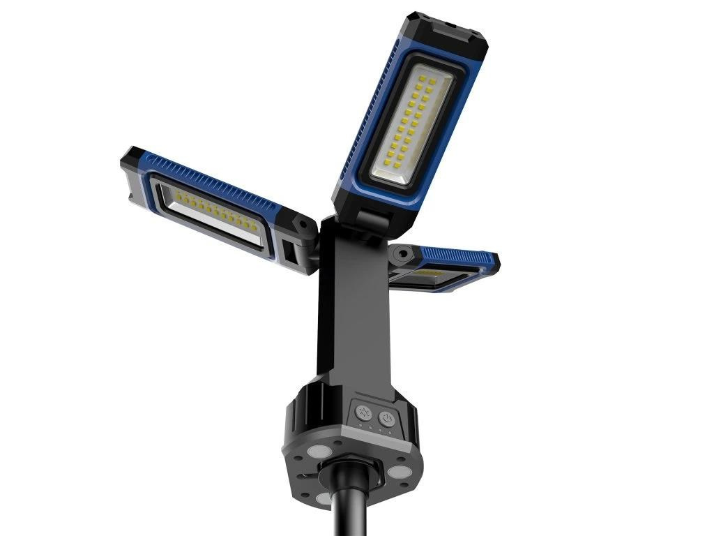 | Režim ovládania: | Rozložte pracovné svetlo a postavte ho. Stlačením vypínača ON/OFF aktivujete svetlo a následne jednotlivými stlačeniami prepínate medzi jednotlivými svetelnými režimami až do prípustného vypnutia. Stlačením vypínača ON/OFF (ikona slnka/ikona svetla) upravujete farbu svetla. Hlava svetla môže byť podľa potreby odmontovaná. |