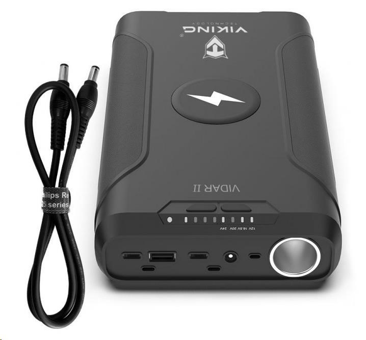 Powerbanka Viking VIDAR II je spoľahlivý pomocník pre každého, kto potrebuje mať energiu vždy po ruke – či už na viacdňovom kempovaní, pri práci v teréne alebo na cestách. S kapacitou 72000 mAh, kompaktným rozmerom a širokým výstupom výstupov môžete pohodlne nabíjať viac zariadení naraz – od mobilov cez notebooky až po 12V spotrebiče.