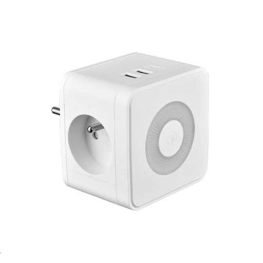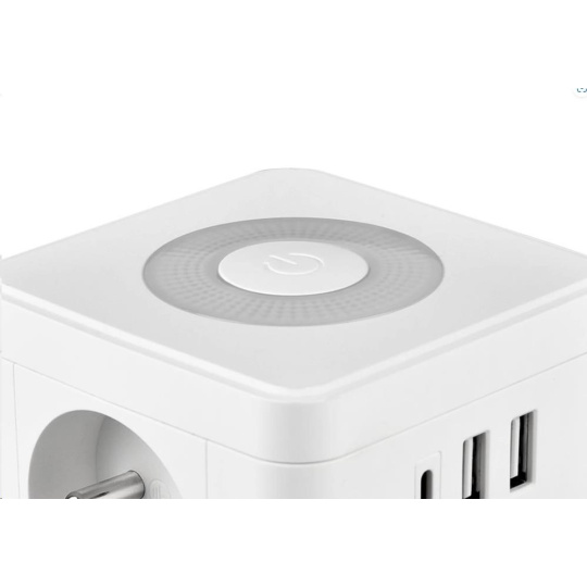 .Viking síťový adaptér Y23L, 2x 230 V, 1x USB-A, 2x USB-C, dotykové světlo, bílá