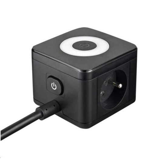 .Viking síťový adaptér YC23L, 2x 230 V, 1x USB-A, 2x USB-C, dotykové světlo, délka 1,4 m, černá