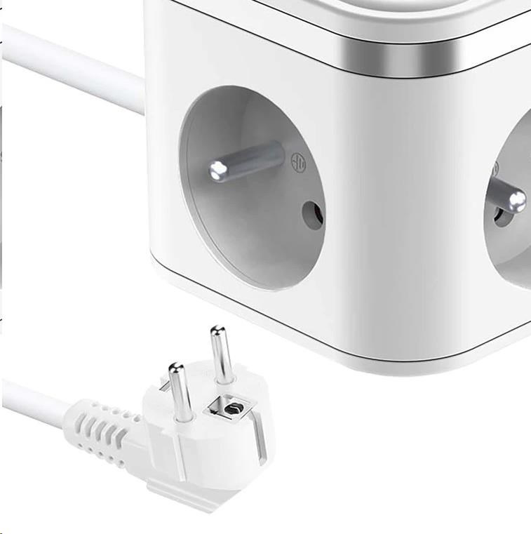 .Viking síťový adaptér YC33, 3x 230 V, 1x USB-A, 2x USB-C, tlačítko ON/OFF, délka 1,4 m, bílá