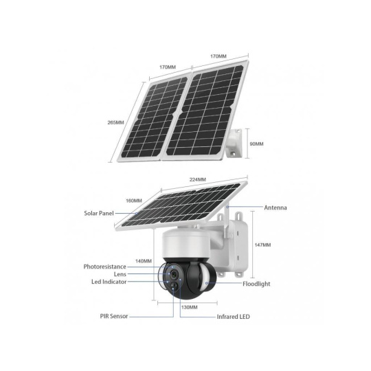 Dva solárne panely zabezpečia potrebné nabíjanie batérie (v závislosti od svetelných podmienok) na neobmedzenú prevádzku kamery 4G a navyše nemusia byť namontované na tele kamery. Pomocou pripojovacieho kábla možno solárny panel umiestniť do vzdialenosti 5 m od kamery.