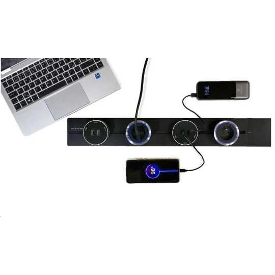 - Elegantný a čistý vzhľad: Inovatívny dizajn eliminuje neprehľadné káble a zabezpečuje estetický vzhľad priestoru. Hladký povrch navyše ľahko čistí a udržuje.