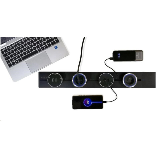 - Bezpečný a robustný dizajn: Zásuvková lišta je vyrobená odolného hliníkového zliatku, ktorý zaisťuje dlhú životnosť a ochranu pred prehrievaním. Tesnicí páska chráni proti prachu a náhodnému dotyku, čím znižuje pravdepodobnosť úrazu elektrickým prúdom.