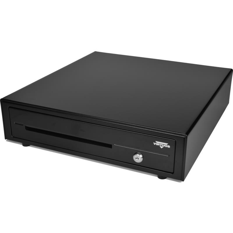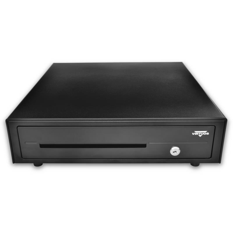 Pokladničná zásuvka Virtuos C420D - s káblom, kovové držiaky, 9-24V, čierna
