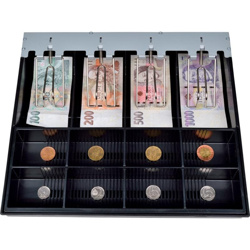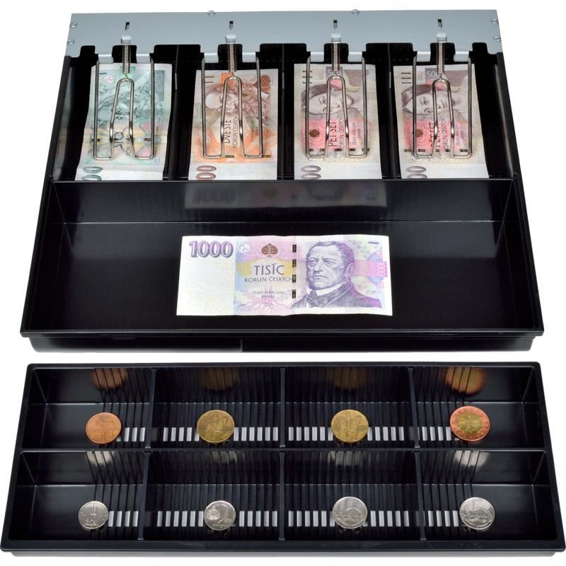 Vyberateľná priehradka na mince a priehradka na bankovky s voľne nastaviteľnými priehradkami