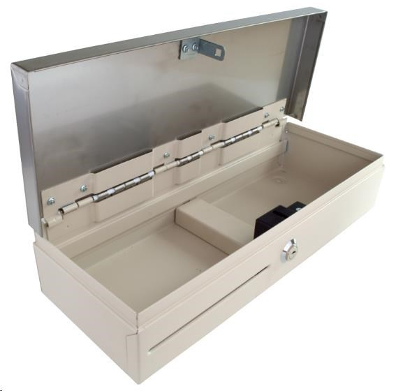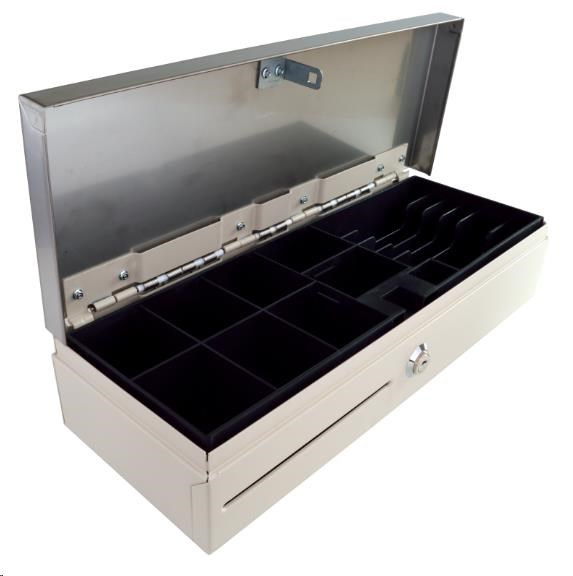 Pokladničná zásuvka Virtuos Flip-top FT-460C3 - s káblom, s uzamykateľným krytom, veko NEREZ, biela