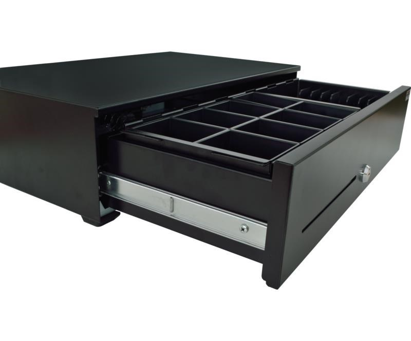 Virtuos pokladní zásuvka SK-500CB s kabelem, kov. pořadač 8/8, 9-24V, černá