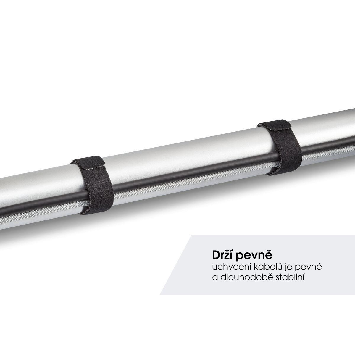 V ideálnom prípade by ste mali káble zviazať dohromady a viesť ich skryto pred zrakmi. Spoločnosť Vogel's k tomu ponúka rad praktických riešení. Pomocou týchto západiek s suchým zipsom môžete káble pevne a bezpečne zviazať dohromady. Sada západiek TVA 6201 sa skladá zo šiestich západiek dlhých 30 cm a širokých 2 cm.