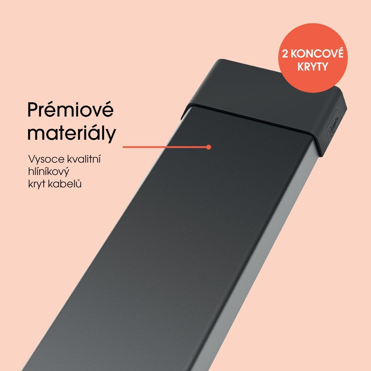 Dokončite svoj nástenný TV držiak televízora touto lištou. Môžete tak elegantne zakryť káble pri stene. Hliníkový kryt pojme až 6 káblov. Je dlhý 95 cm a ľahko ho môžete zkrátit na požadovanú dĺžku. Držiaky káblov ľahko vedú káble pod krytom. Dodávané 2 záslepky umožňujú usporiadanie oboch koncov.