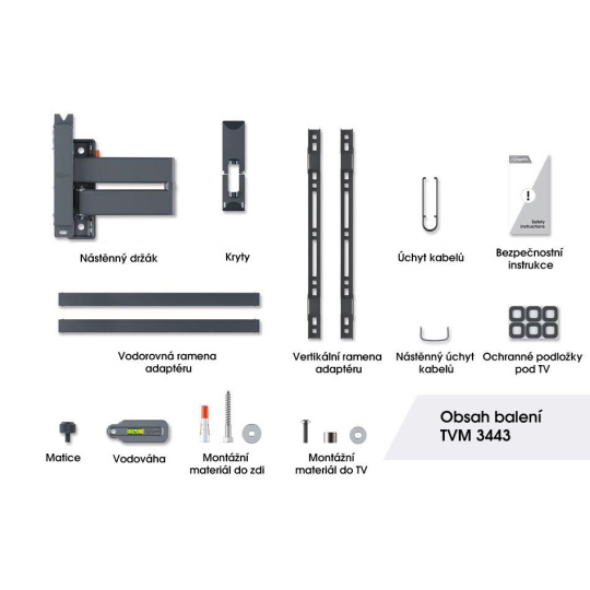 Jedným prstom môžete televízor presunúť do požadovanej polohy. Nástenný držiak TVM 3443 je vybavený funkciou One-Finger™ Movement. Vďaka špeciálnym ložiskám je pohyb nástenného držiaka veľmi plynulý a ľahký. Pre bezpečné naklápnutie a zaistenie televízora je držiak vybavený jedinečným systémom TiltAnchor™, ktorý uzamkne náklon TV vo zvislej polohe.