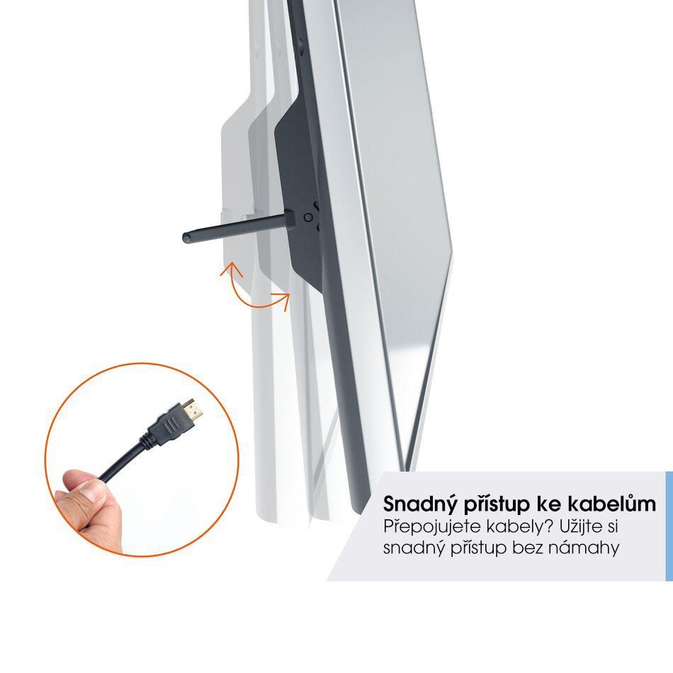 Nástenný držiak má špeciálnu polohu pre údržbu, ktorá umožňuje jednoduchý prístup k káblom alebo USB portom po inštalácii. Stačí odtiahnuť spodnú časť TV od steny. TV pritom zostáva stále bezpečne zamknutý na držiaku.