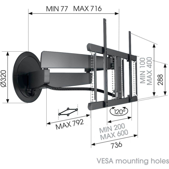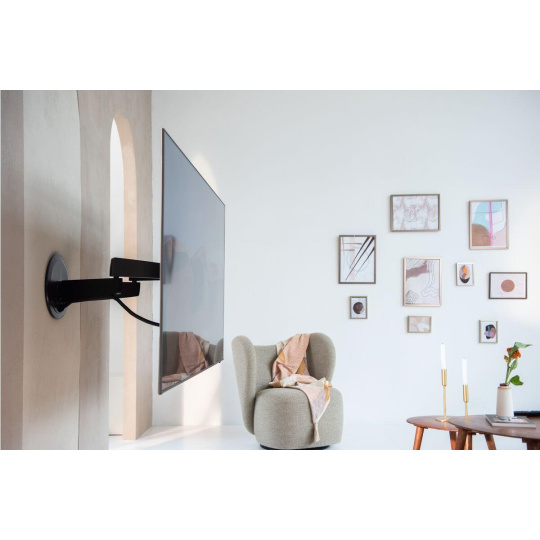 MotionMount má veľký rozsah pohybu dopredu vďaka 4 dlhým a výkonným oporným ramenám. Motorický pohyb umožňuje posunúť televízor dopredu až o 72 cm. Vďaka tomu je nástenný držiak televízora vhodný aj na montáž do skrine alebo výklenku.
