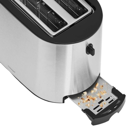 Podsvietené tlačidlá ponúkajú topinkovač, ktorého používanie nemôže byť jednoduchšie, s funkciami Zrušiť, Ohriať/opekať a Rozmraziť, zatiaľ čo vyberací tácek na drobky pomáha udržiavať vašu kuchyňu bez nečistôt. To všetko v sofistikovanom a pútavom tele vyrobenom z odolnej nerezovej ocele Cromargan® 18/10, ktorá zaručuje výnimočnú odolnosť a štýlový matný povrch, ktorý nikdy nesklame.