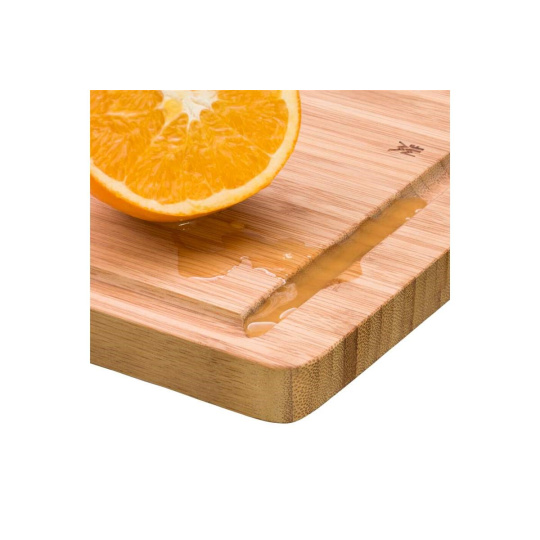 Prírodná elegancia a maximálna šetrnosť k vašim nožom. Veľká kuchynská doska WMF vyrobená z masívneho bambusu je ideálnym základom pre každodennú prípravu surovín. Vďaka svojej veľkosti poskytuje dostatok priestoru na krájanie aj následné štýlové servírovanie pokrmov.