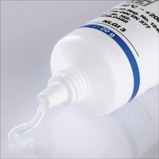 - špeciálne silikónové mazivo pre použitie ako tesnenie/lubrikant v kuchyniach, kúpeľniach, domácnostiach a dielňach - pre variace komponenty a tesnenia v plne automatických kávovaroch, nádobách na mlieko, spojoch atď. - môže byť použitý na lubrikáciu kuchynských zariadení ako napr. univerzálnych krájačov, mixérov, kuchynských robotov atď. - vhodný aj pre studené/teplé vodovodné ventily v sanitárnych zariadeniach a kúrení alebo potravinárskom priemysle - vysoká efektivita vďaka výbornej priľnavosti ku všetkým materiálom - neutrálny k plastovým materiálom a elastomerom - konzistentné vlastnosti: nevysychá, nestvrdne a netečie - odolný voči studenej a horúcej vode, acetónu, etanolu, etylén glykolu, glycerínu a metanolu - toxicky nezávadný a testovaný v súlade s nemeckou smernicou LFGB - nezanecháva pach ani chuť - bezpečný pri použití s potravinami - testovaný DVGW v súlade s normou DIN EN 377 - vhodný pre teploty v rozsahu od -40°C do +200°C - priehľadné silikónové mazivo (potravinárska vazelína) - obsah: 20 g - vyrobené v Nemecku Informácia pre spotrebiteľa Použitie: - dôkladne vyčistite miesto, kam chcete prípravok aplikovať - aplikujte rovnomerne v tenkej vrstve - nenanášajte príliš veľa maziva Vždy sa riaďte pokynmi výrobcu zariadenia. Plastové materiály na báze silikónu, napr. silikónová guma, sa môžu čiastočne rozpustiť pôsobením silikónového maziva. Po otvorení spotrebujte do 36 mesiacov a skladujte pri teplote medzi 0°C až +40°C. Releases: NSF H1 reg. no. 124381 beer froth; KTW seals D2 DVGW DIN EN 377 reg. no. NG-5162BL0482.