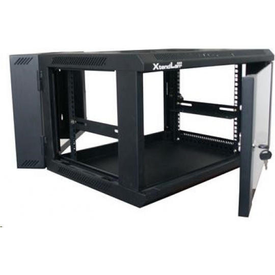 XtendLan 19" dvoudílný nástěnný rozvaděč 12U 600x550, nosnost 60 kg, skleněné dveře, svařovaný,černý
