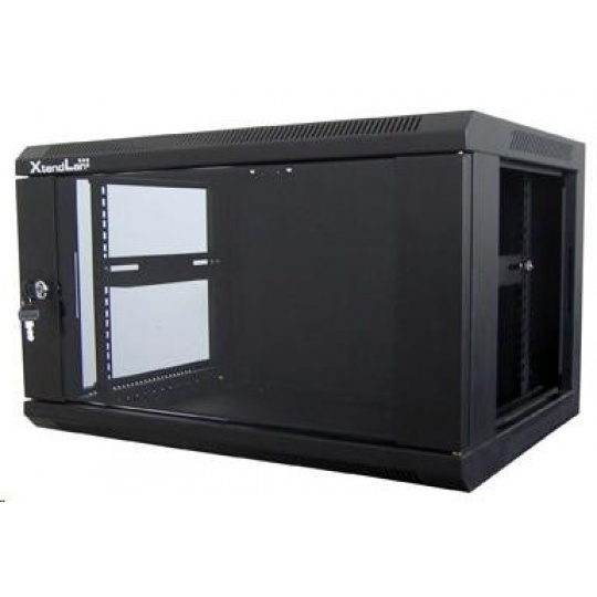 XtendLan 19" nástěnný rozvaděč 6U 600x450, nosnost 60 kg, skleněné kouřové dveře, svařovaný, černý