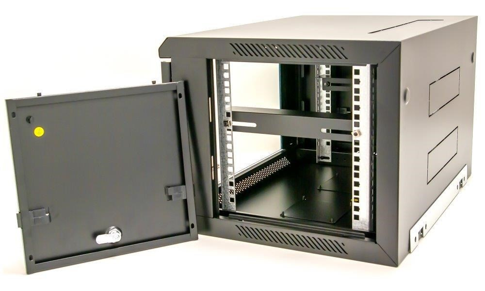 XtendLan 19" nástěnný rozvaděč 6U 600x450, nosnost 60 kg, skleněné dveře, svařovaný, černý