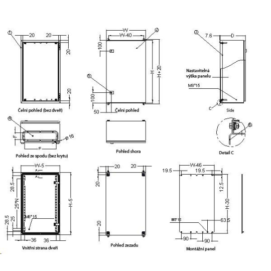 - Hrúbka montážneho panelu 2,5 mm, valcovaná oceľ