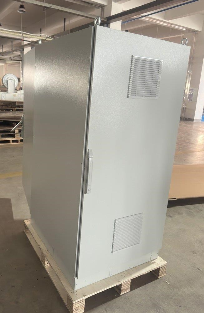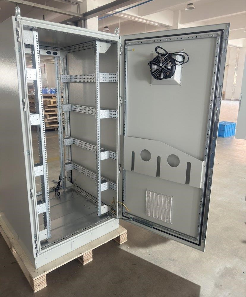 Rozvádzač na inštaláciu dátových a telekomunikačných zariadení, ventilácia s termostatom, podstavec, šedý.