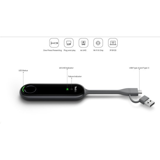 Yealink PA20 je nový 4K Ultra HD prezentačný asistent. Vďaka hardvérovému streamovaniu UHD až do 4K/30FPS PA20 ušetrí veľa úsilia tým, že odstráni nutnosť inštalácie softvéru alebo ovládačov. Port USB typu A / plne vybavený port USB typu C je vhodný pre rôzne počítače a telefóny. Pretože PA20 má vstavaný softvér pre prezentéra a Wi-Fi 6 čip, jednoducho pripojte PA20 k zariadeniu a môžete byť rýchlo pripravení na prezentáciu. PA20 vám poskytuje pohodlnejší a bohatší zážitok zo zdieľania obsahu.
