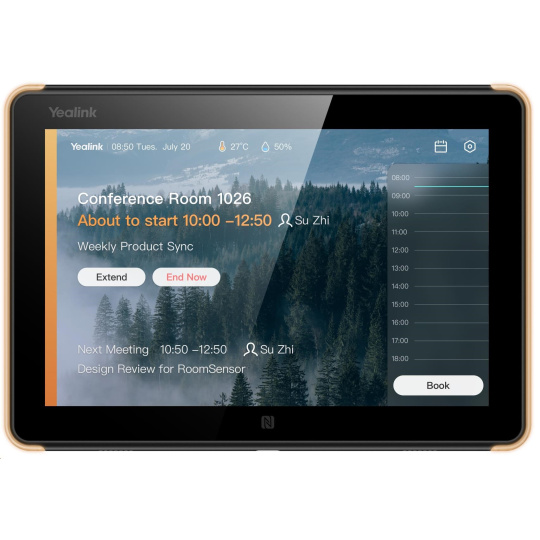 Yealink RoomPanel je profesionálne multifunkčné zariadenie na plánovanie miestnosti s 8-palcovou dotykovou obrazovkou, operačným systémom Android 9.0, plne RGB LED, duálnym mikrofónom a súpravou reproduktorov. Kompaktný panel typu všetko v jednom nielenže zobrazuje stav miestnosti v reálnom čase, ale umožňuje aj ad hoc rezervácie schôdzok alebo ďalších rezervácií zasadacích miestností, čím sa zvyšuje efektivita správy pracovného priestoru v podniku. Vďaka podpore PoE a dodávaným multi-voliteľným konzolám sa dá ľahko inštalovať na rôzne povrchy (betónová stena/sklo/drevo atď.).