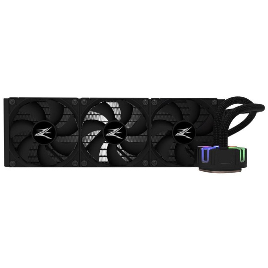 Vodný chladič určený na chladiť širokú škálu procesorov. Vyznačuje sa vysokou kvalitou, výkonom a spoľahlivosťou. Disponuje tromi 120 mm ventilátormi. Odolné opletené hadice sú dlhé 400 mm a vďaka dostatočne širokému priemeru zaručujú plynulý prietok chladiva. Chladič má ARGB podsvietenie integrované v chladicím bloku, vďaka ktorému si môžete úplne prispôsobiť vzhľad chladiča.
