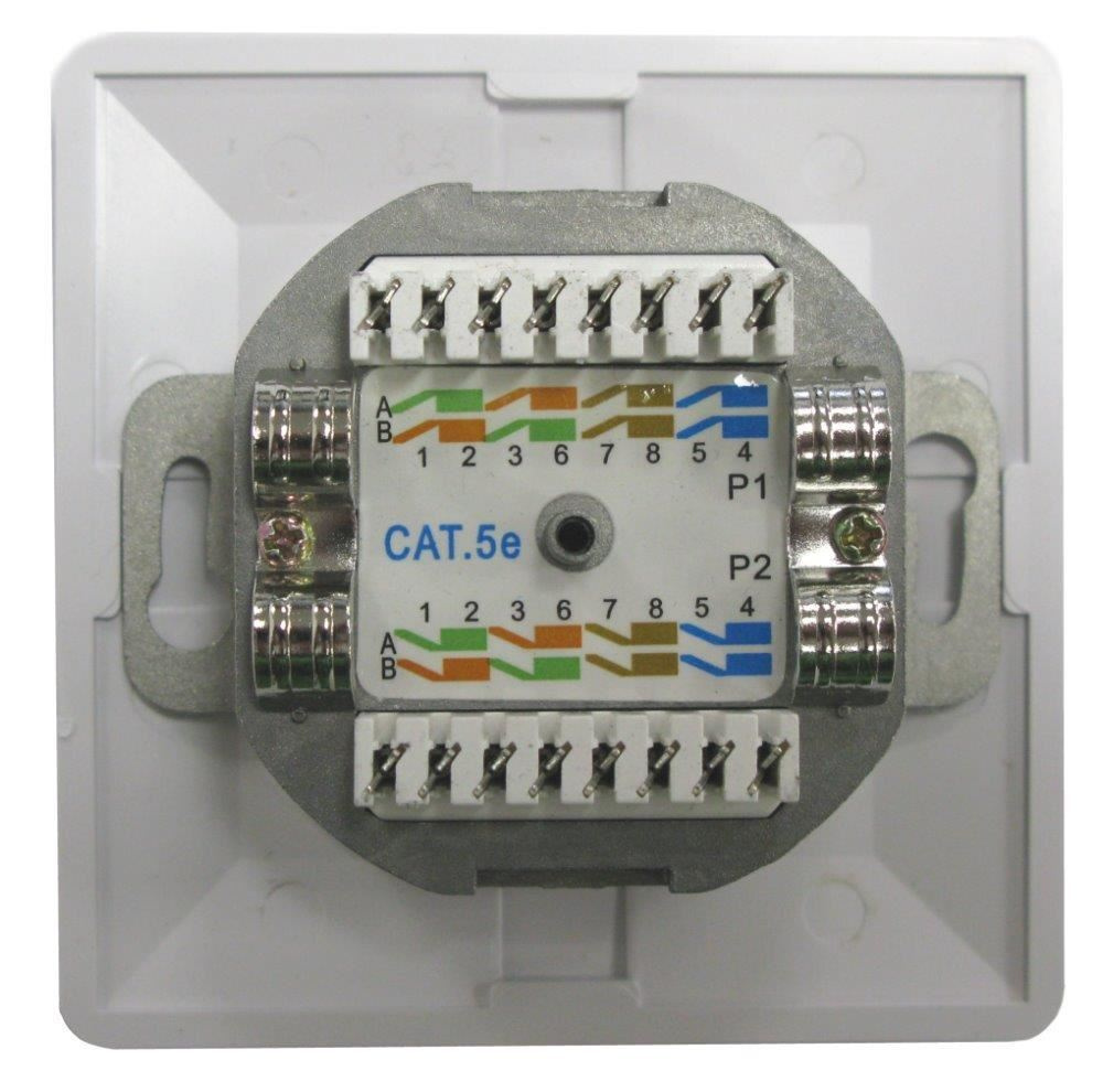 Zásuvka STP 2x RJ45 Cat5E, dvojitá svorkovnica, zapustená