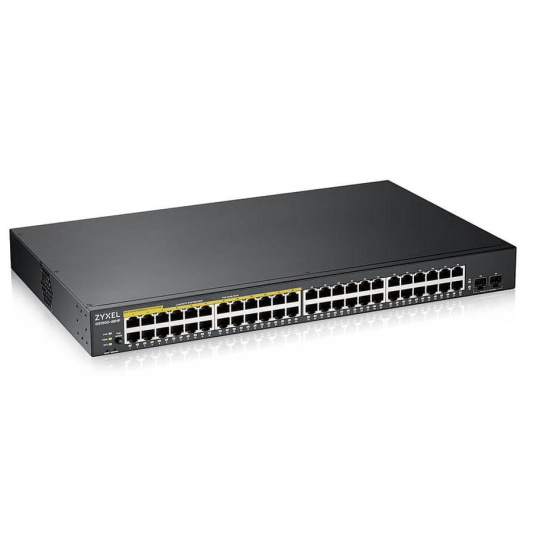 Zyxel GS1900-48HP v2 50portový gigabitový webový inteligentný PoE prepínač, 48x gigabitový RJ45 (24x PoE), 2x SFP, rozpočet PoE 170W