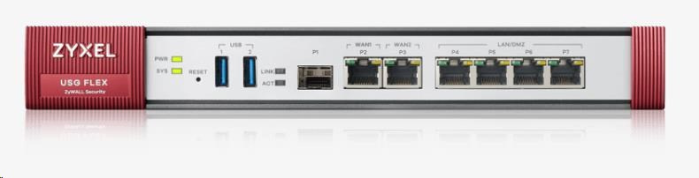Zyxel USGFLEX200 firewall with 1-year UTM bundle, 2x gigabit WAN, 4x gigabit LAN/DMZ, 1x SFP, 2x USB